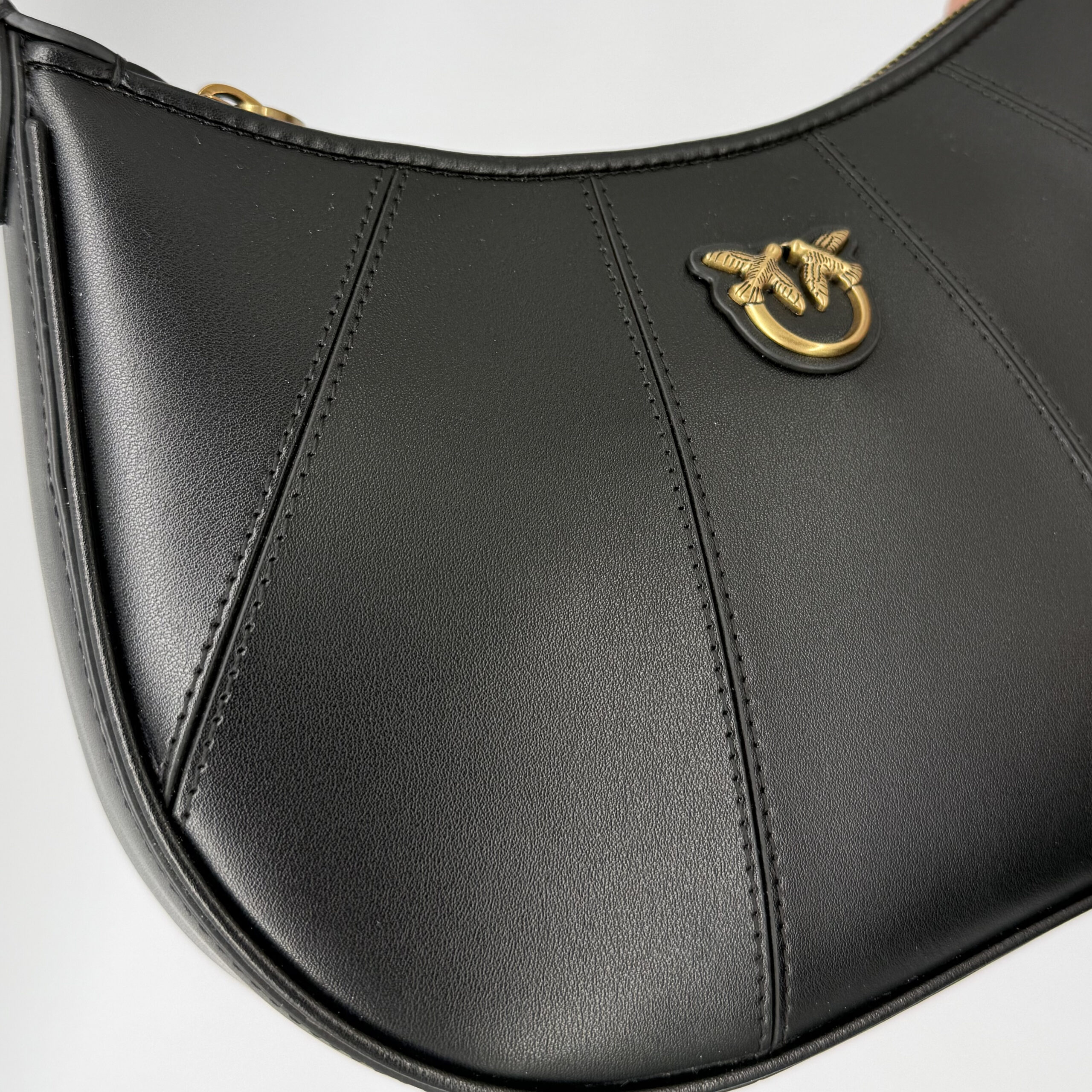 Njena zaobljena „half moon“ silueta i prepoznatljiva Pinko metalna kopča čine je bezvremenskim modnim izborom koji se lako uklapa u svaku odevnu kombinaciju — od dnevne elegancije do večernjeg glamura.