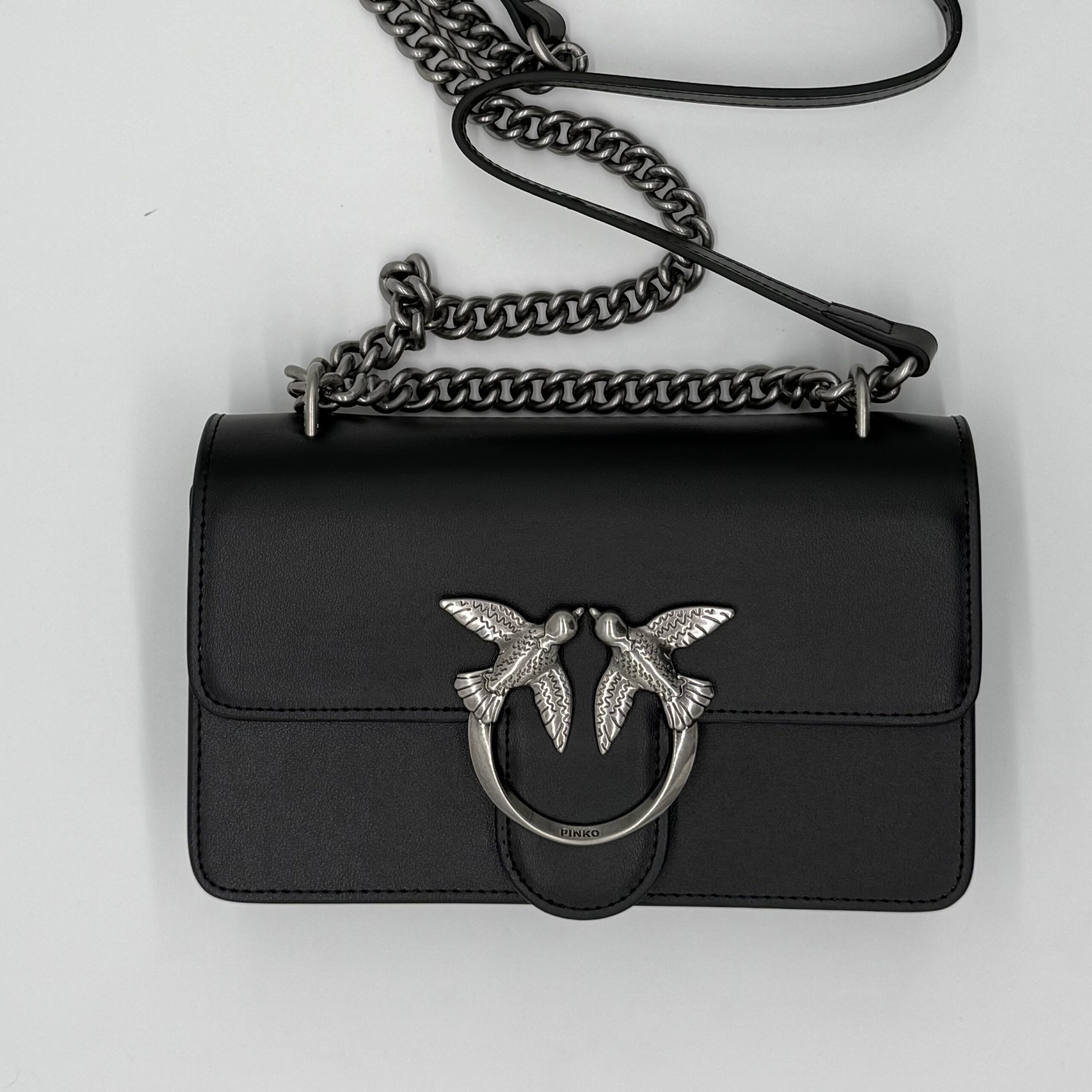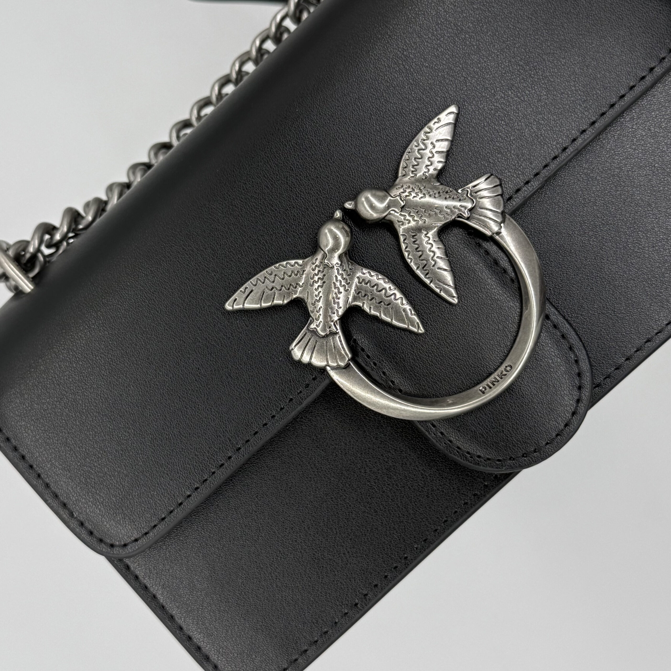 Crna (Nero) boja dodatno naglašava klasičnu siluetu i čini ovaj model izuzetno univerzalnim – idealnim kako za dnevne gradske kombinacije, tako i za večernje i formalnije prilike. Ikonična Love Birds metalna kopča predstavlja prepoznatljiv Pinko detalj i daje torbi luksuzan akcenat, dok kompaktan format pruža praktičnost bez kompromisa po pitanju stila.