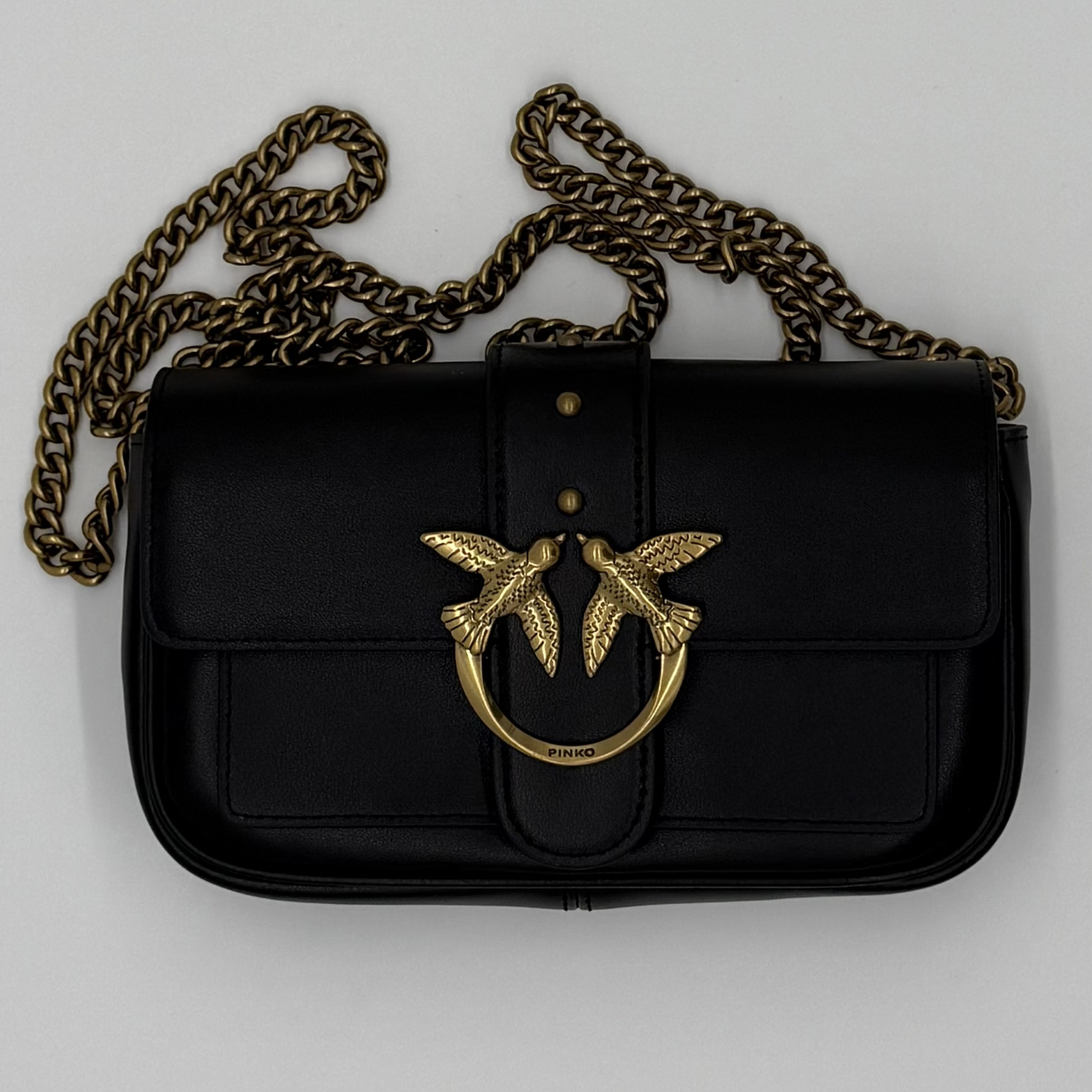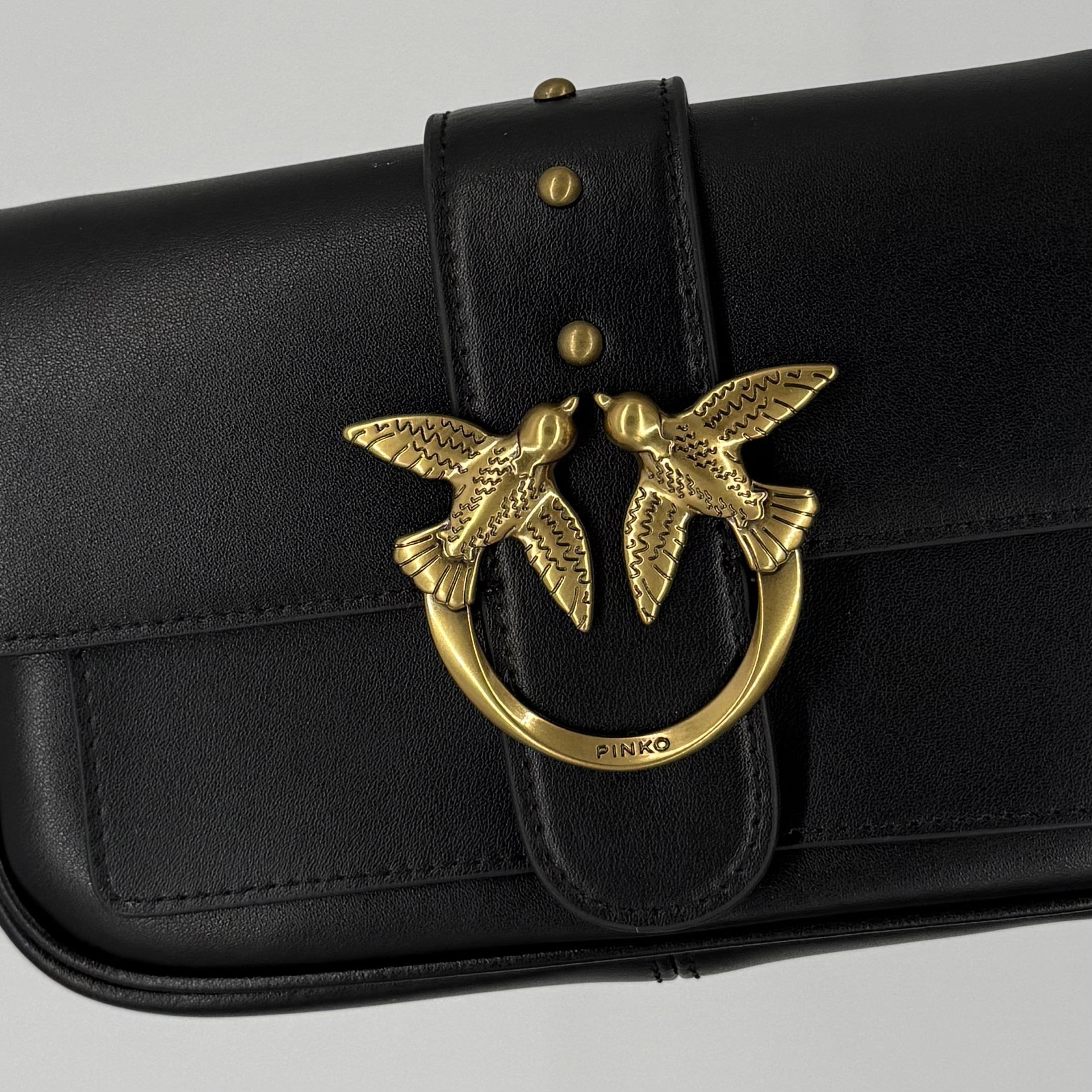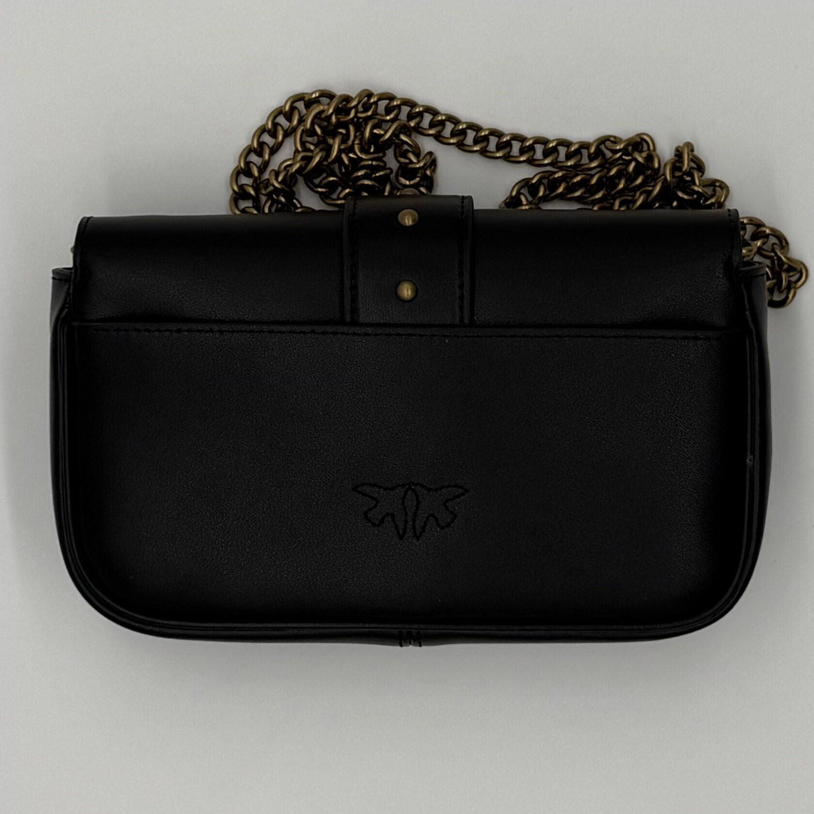 Crna torbica Love One Pocket C predstavlja savršenu kombinaciju modernog dizajna i prepoznatljive Pinko elegancije. Izrađena od luksuzne glatke jagnjece kože (Vitello Seta), torba odiše svestranošću — idealna je za svaku priliku, od poslovnog dana do večernjeg izlaska.