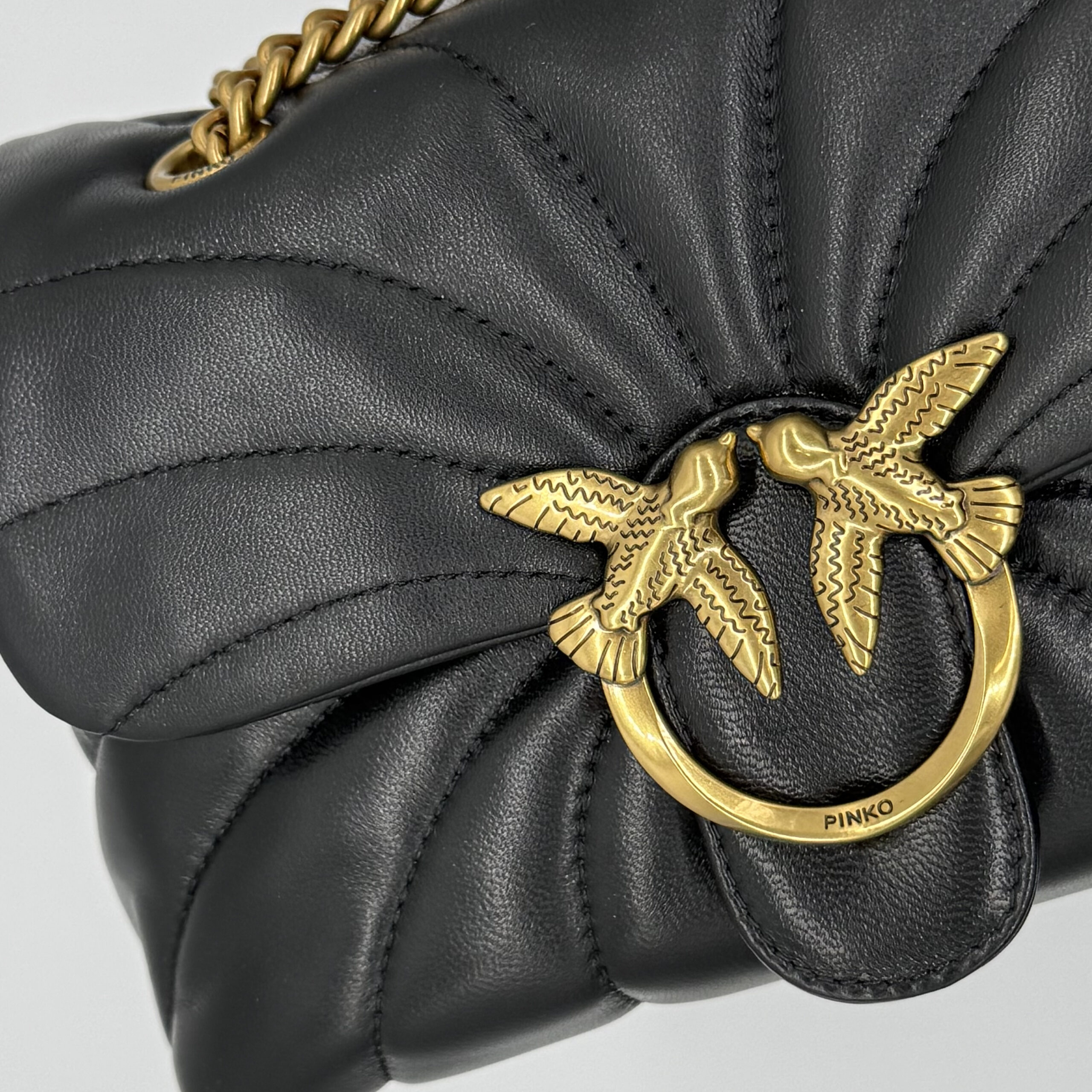 Klasična crna (Nero) boja dodatno naglašava elegantnu siluetu i čini ovaj model izuzetno univerzalnim – idealnim za dnevne kombinacije, ali i kao efektan detalj večernjeg stajlinga. Ikonična Love Birds metalna kopča u zlatnoj boji donosi luksuzan kontrast, dok kombinacija lanca i kožnog umetka omogućava udobno nošenje.