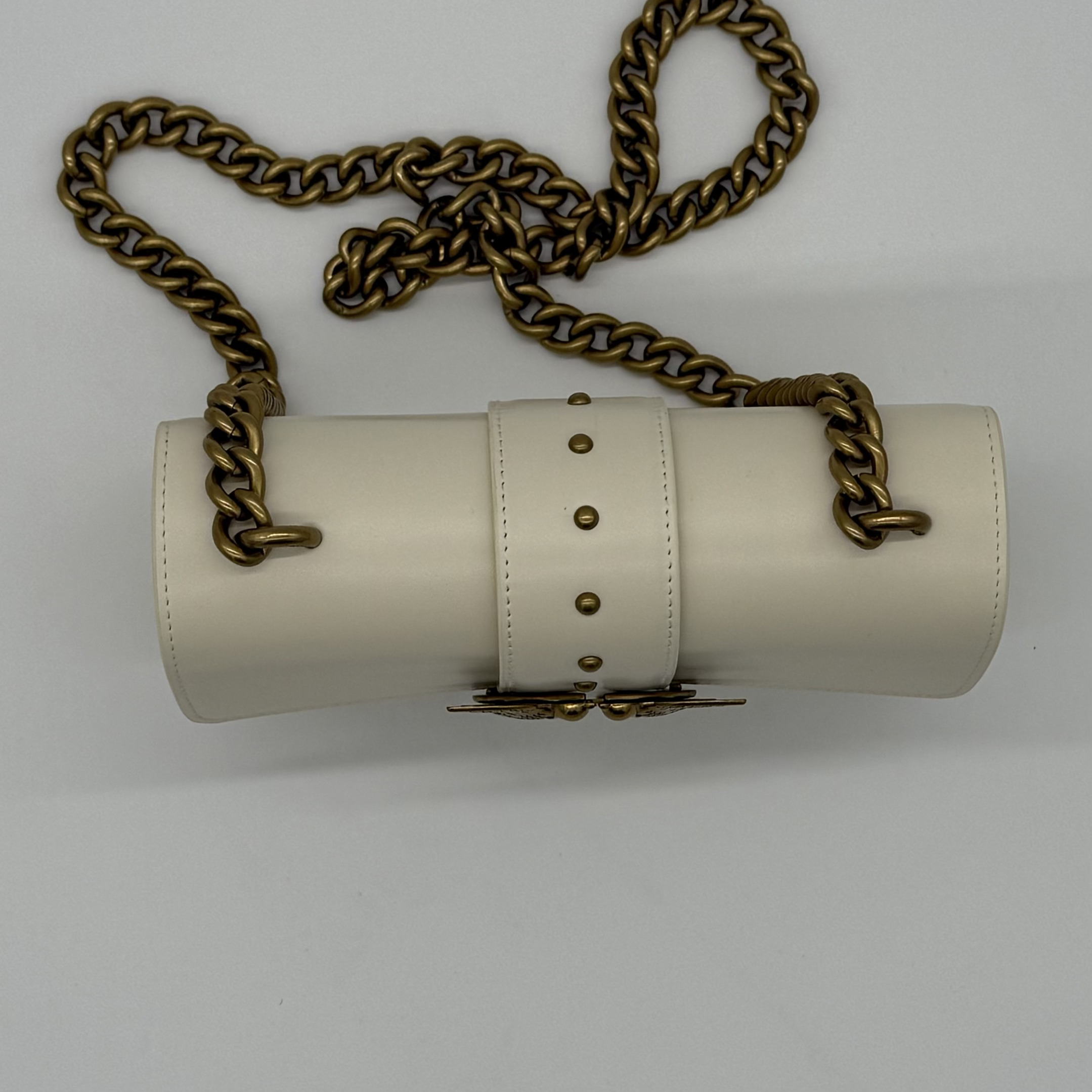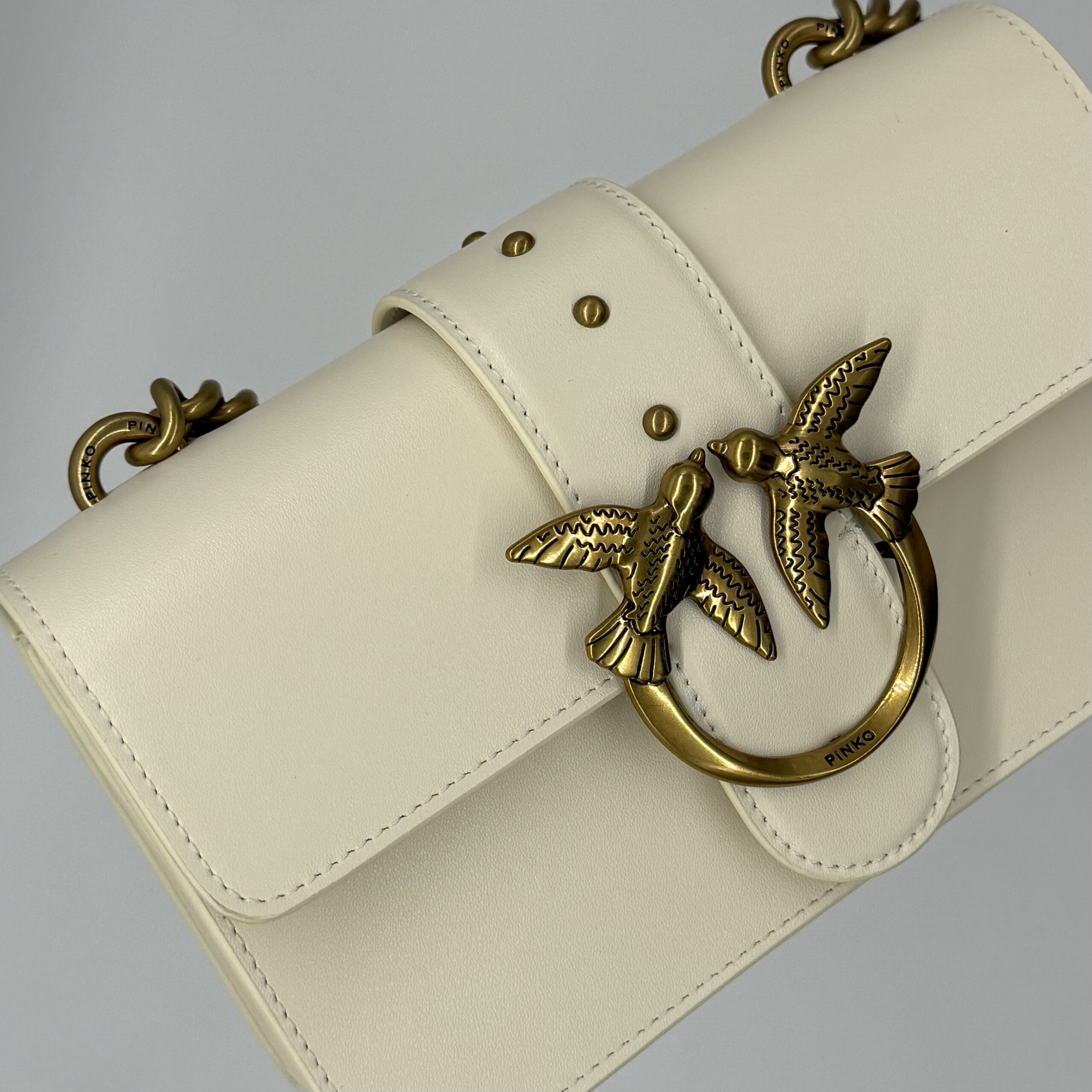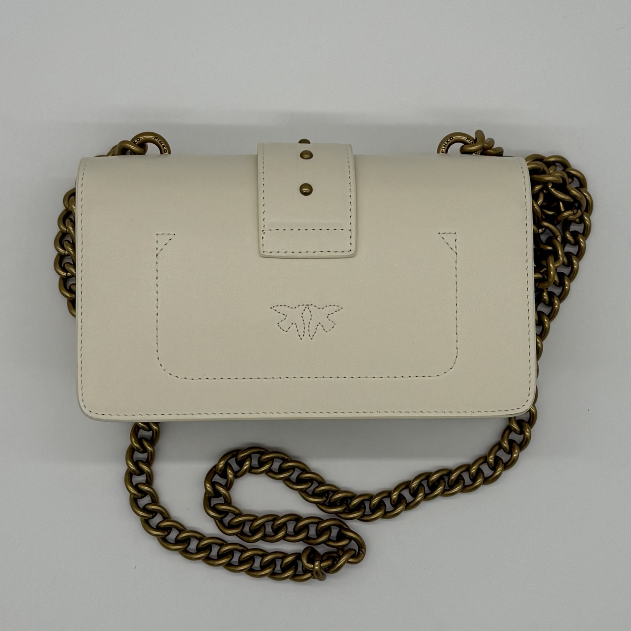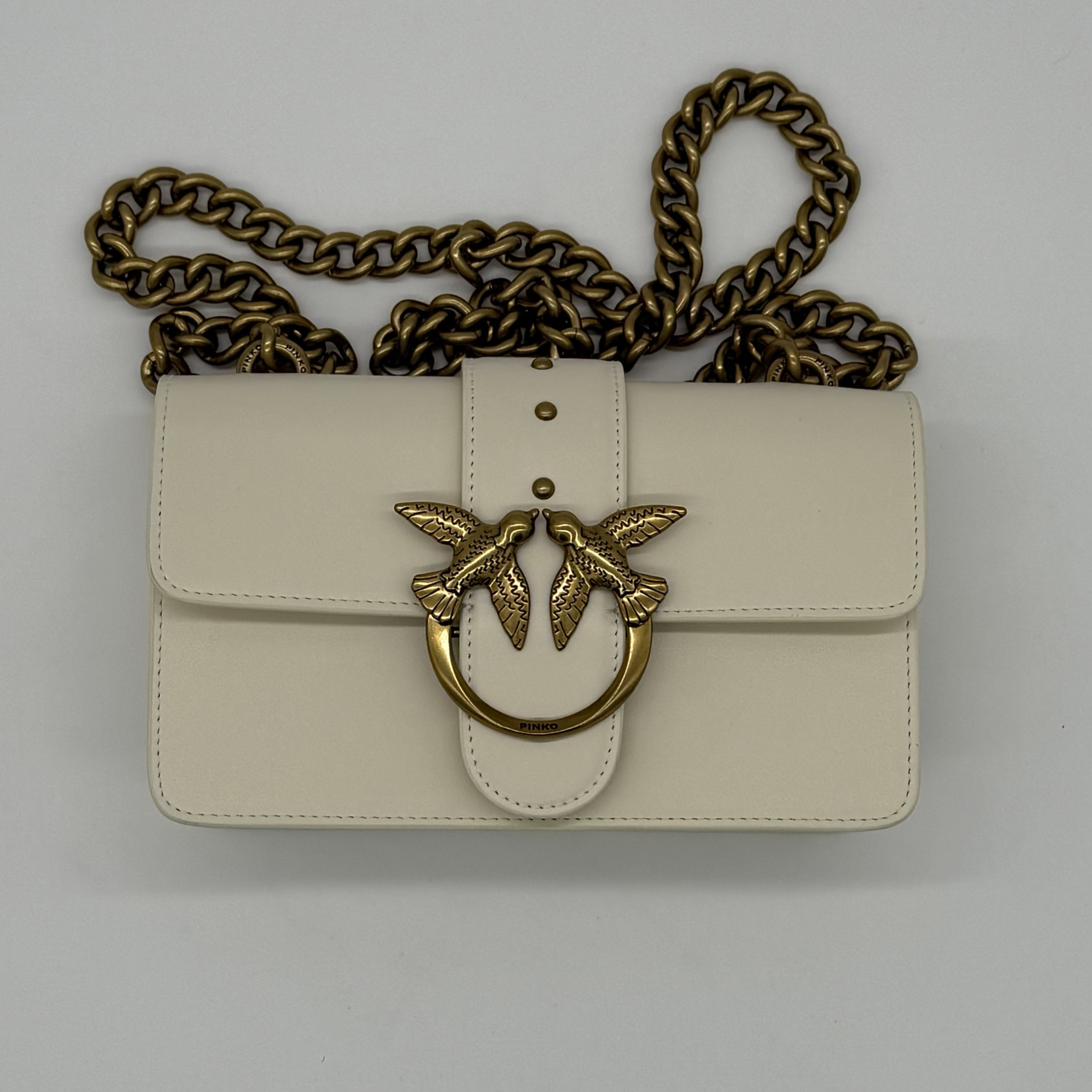 Prepoznatljiva kopča sa motivom ptica unosi prepoznatljiv Pinko šarm, dok lančani kaiš sa kožnim jastučićem pruža savršen balans udobnosti i sofisticiranosti.