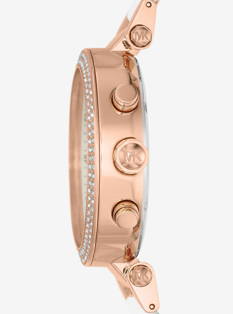 Michael Kors Parker MK5774 je elegantan i sofisticiran ženski ručni sat iz poznate Parker kolekcije brenda Michael Kors. Kombinujući klasičan dizajn sa modernim detaljima i funkcionalnošću, ovaj model predstavlja odličan izbor za žene kojima je stil bitan kako u svakodnevnim kombinacijama, tako i za posebne prilike.
