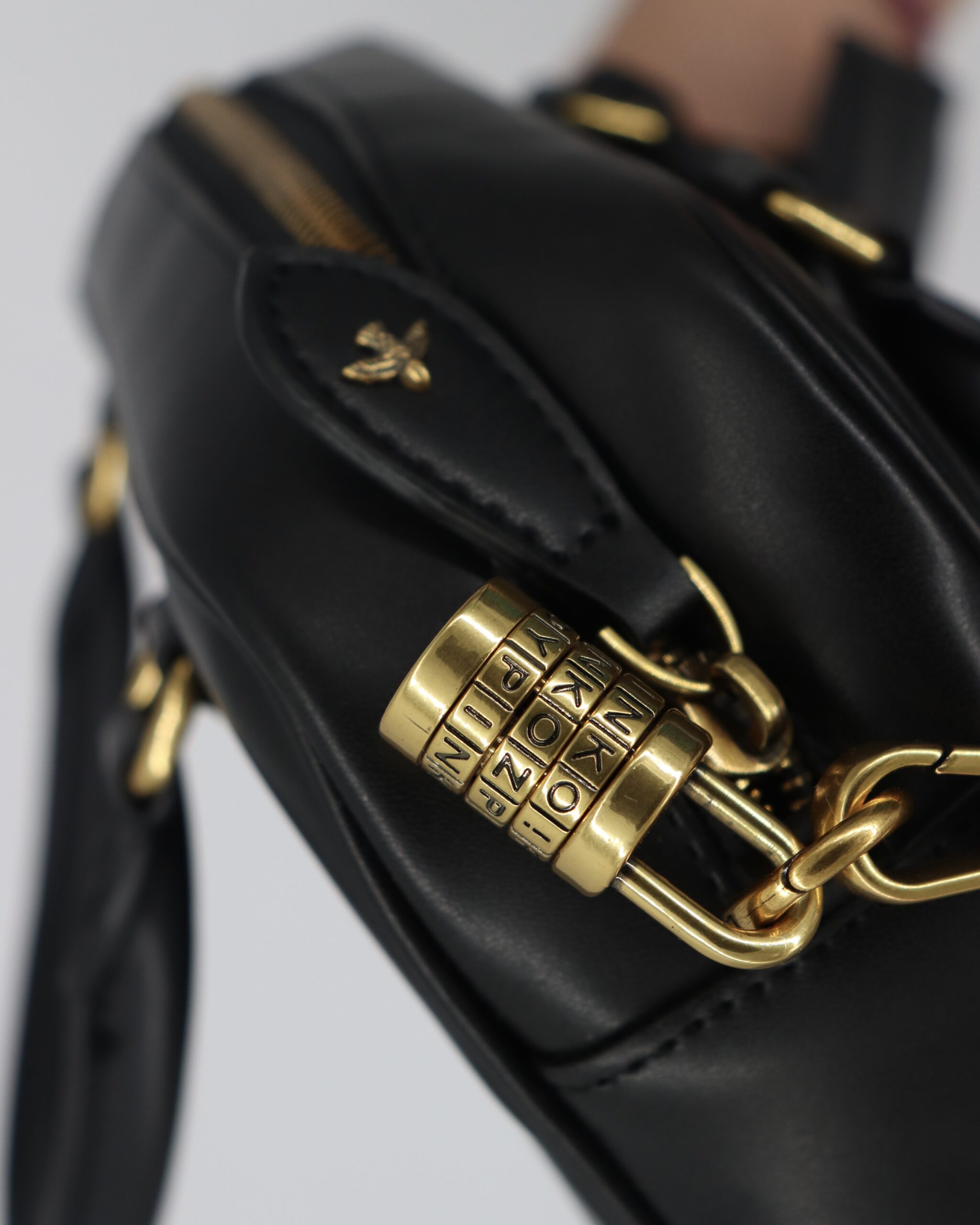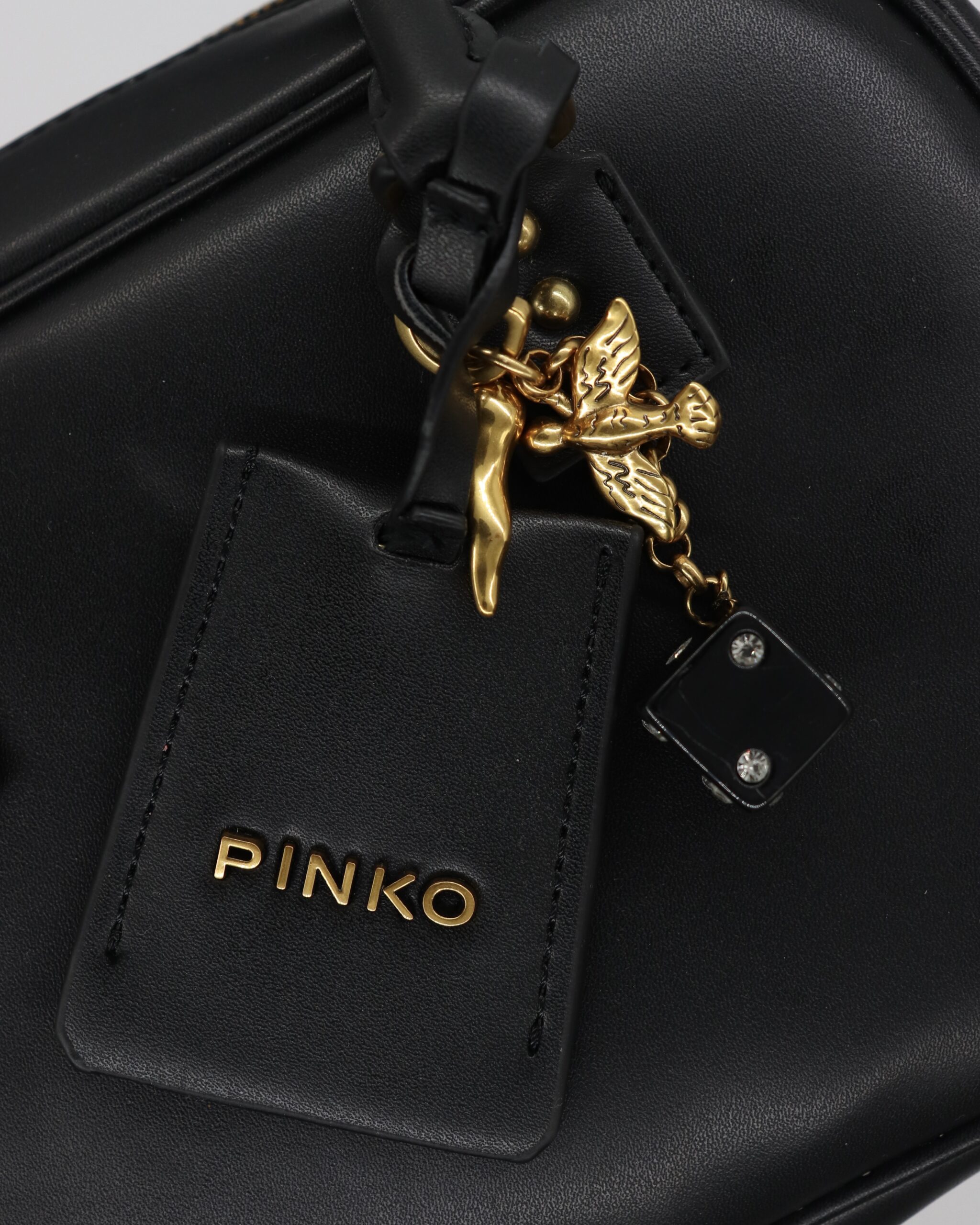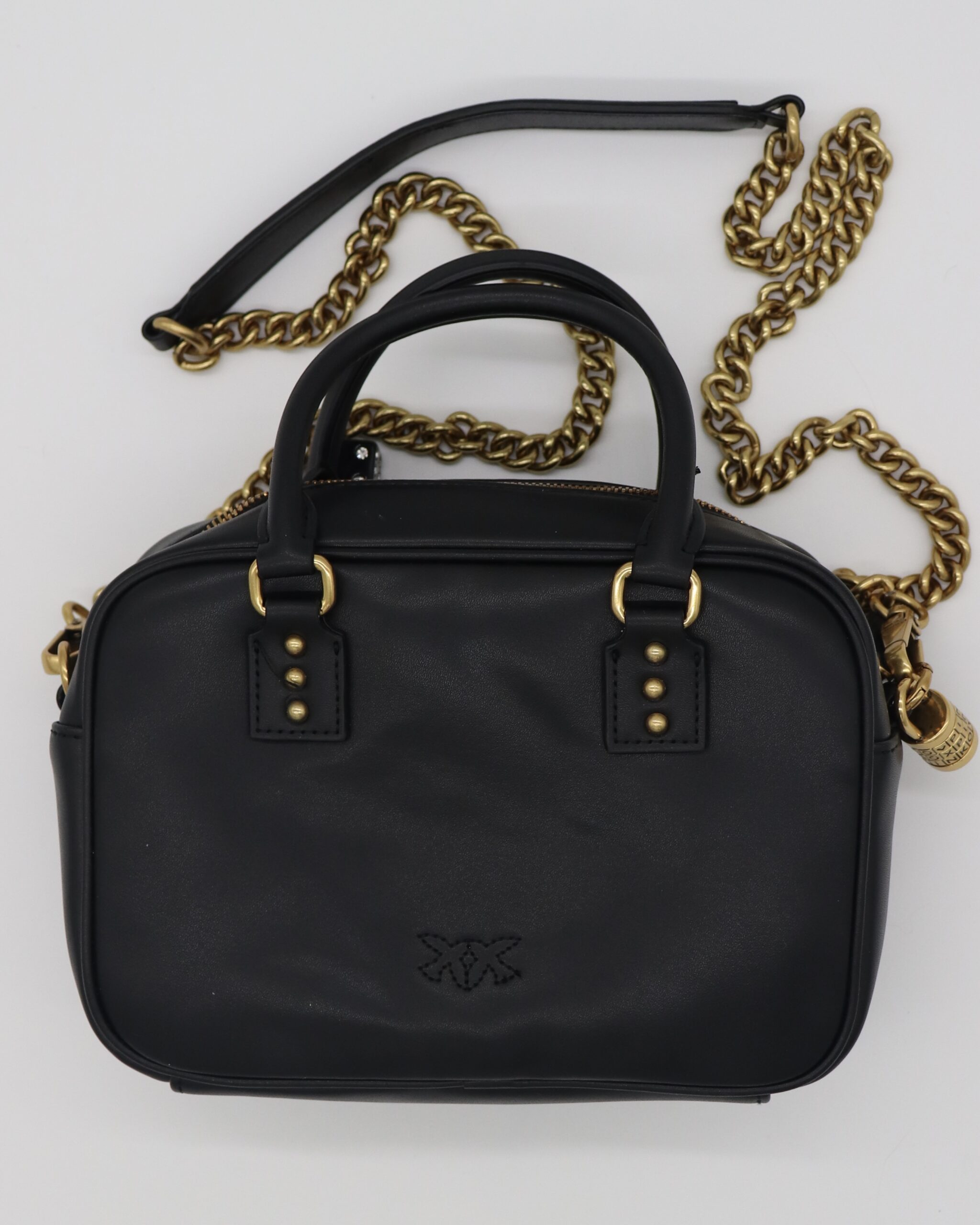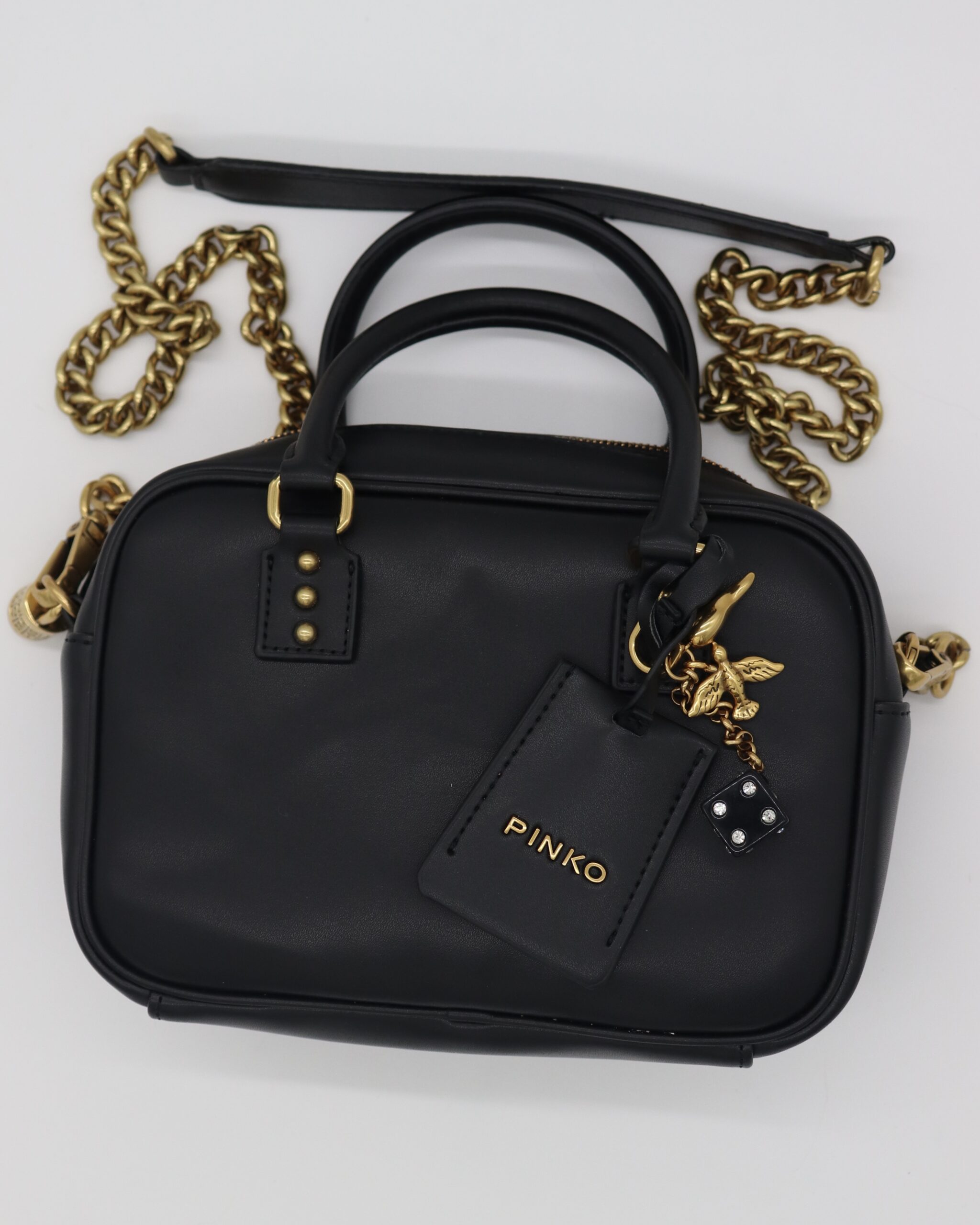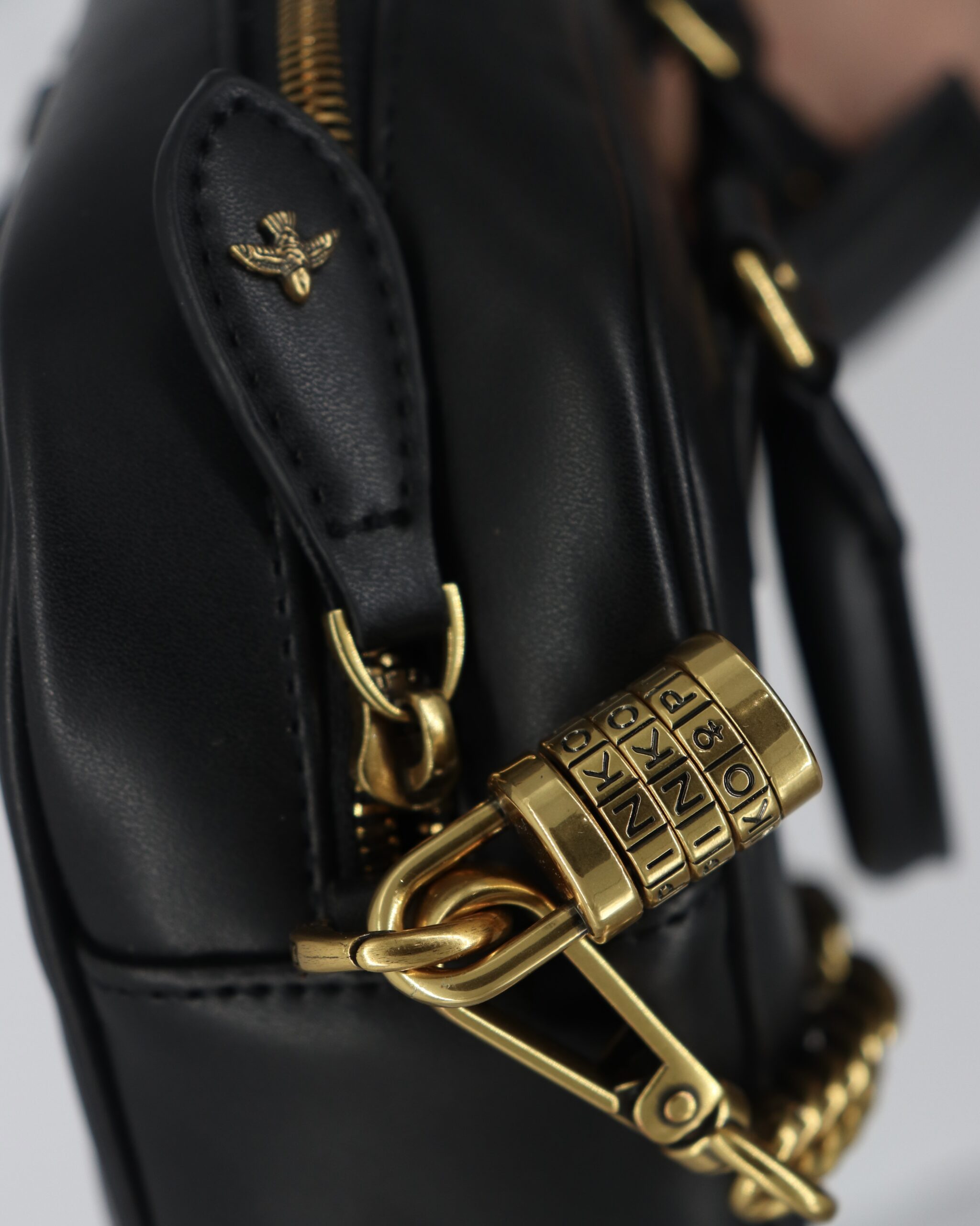 Crna torba sa zlatnim hardverom i istim upečatljivim Pinko dodacima. Elegantna i praktična – lako se uklapa u sve kombinacije. Savršena kao svakodnevna torba, ali i za poslovne prilike.