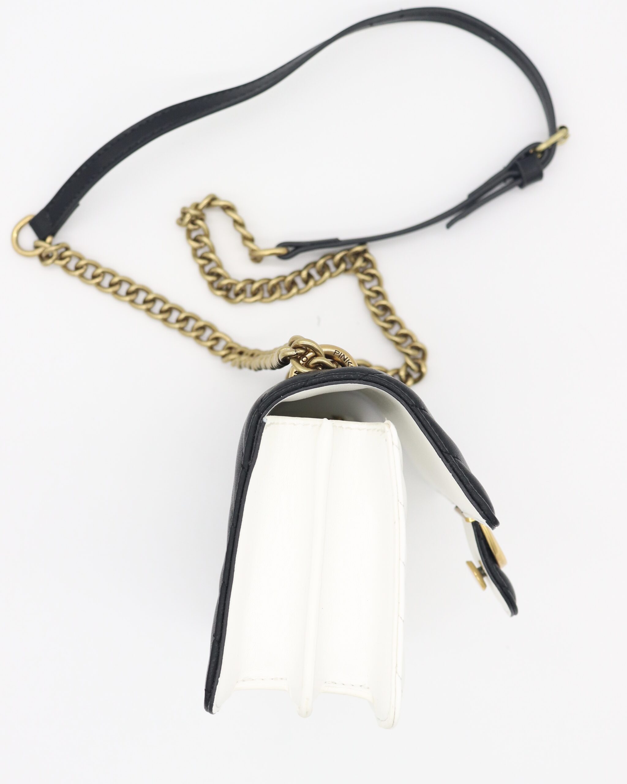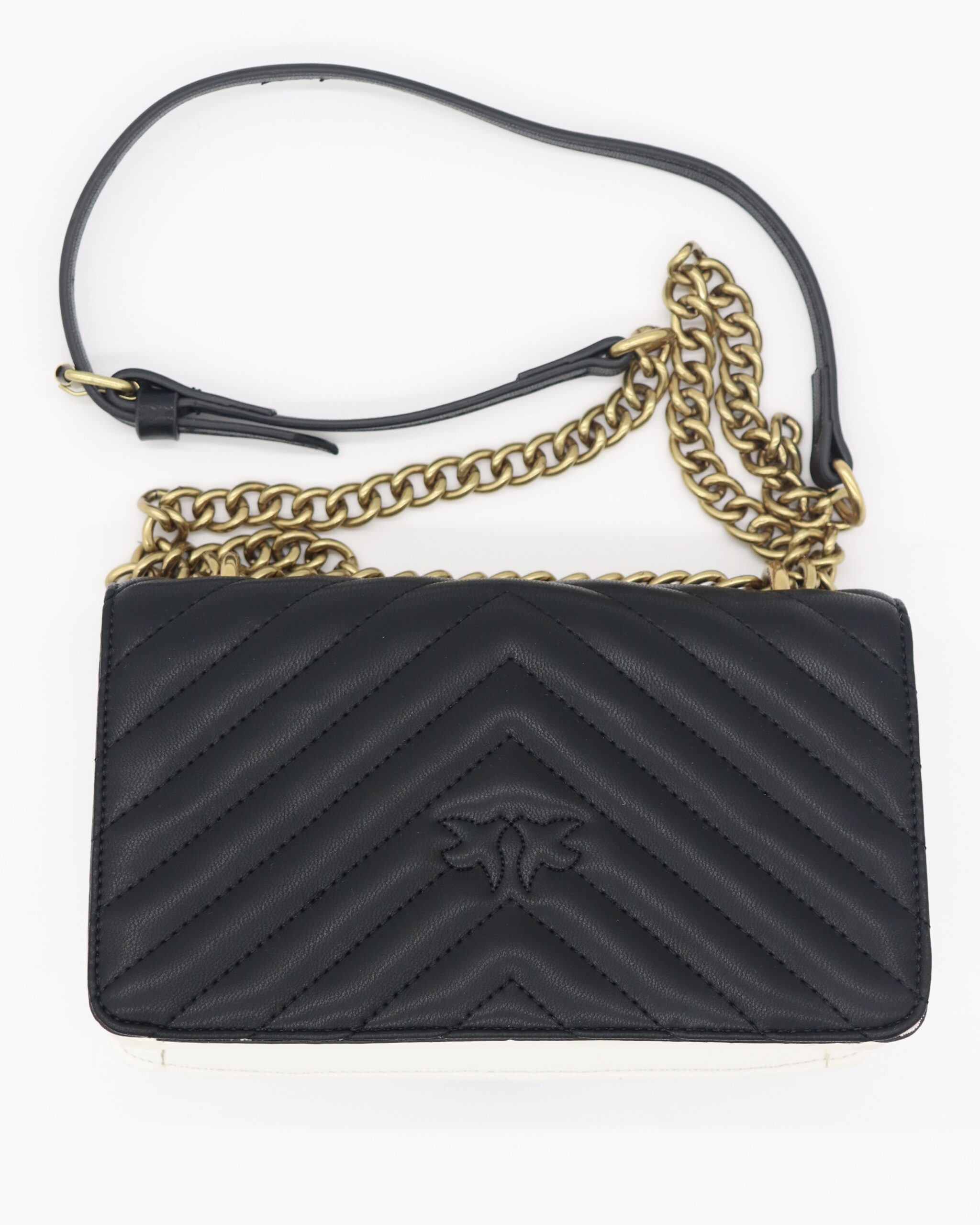 Kombinacija crne i bele boje čini ovu torbu sofisticiranom i upečatljivom. Geometrijski prošiv i zlatna kopča sa pticama predstavljaju prepoznatljiv Pinko stil, dok kontrast boja dodaje modernu notu svakom outfitu. Idealna za elegantne prilike i dnevne kombinacije koje zahtevaju dozu luksuza.