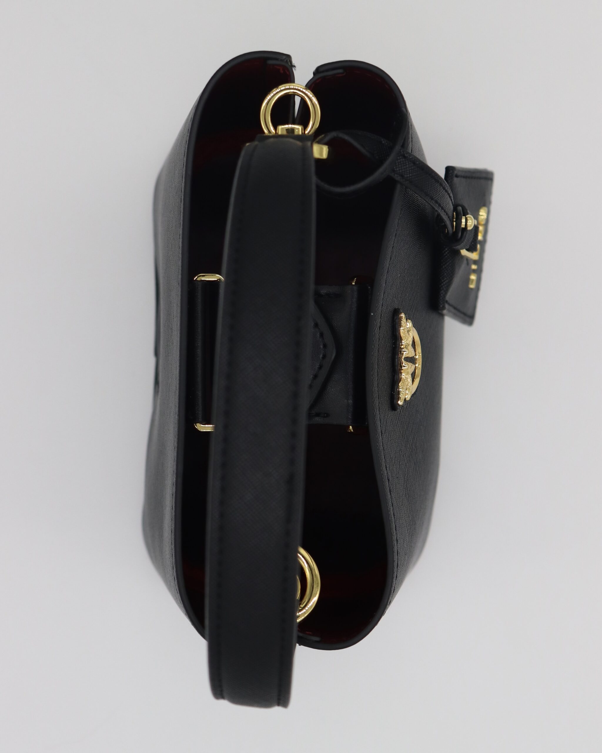 Klasična crna torbica u bucket formi, jednostavna ali efektna. Zlatni elementi daju elegantan izgled, dok čvrsto dno omogućava stabilnost. Savršena za svakodnevnu upotrebu ili večernji minimal look.