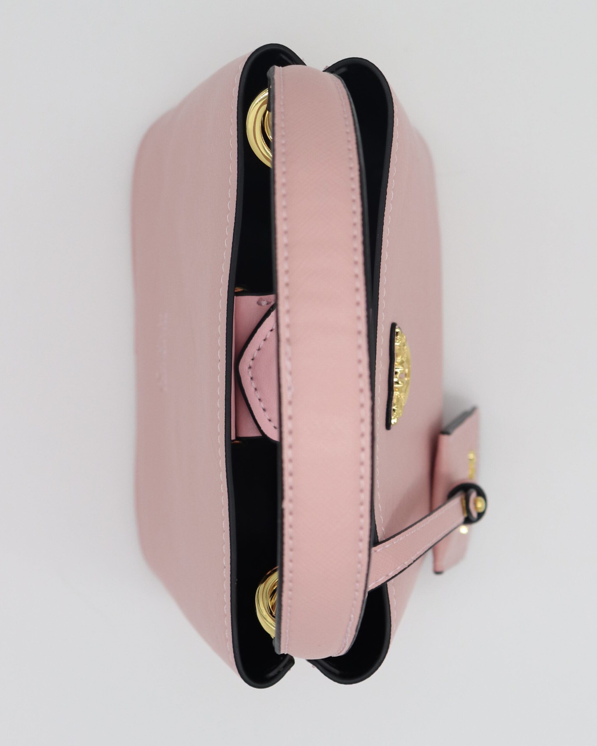 Mini torba u obliku kantice u nežnoj roze nijansi, izrađena od čvrste, teksturisane kože. Zlatni detalji i Pinko logotip u kombinaciji sa priveškom čine ovaj model idealnim za prolećne i letnje outfite. Kaiš je podesiv, pa se torba može nositi i na ramenu ili crossbody.