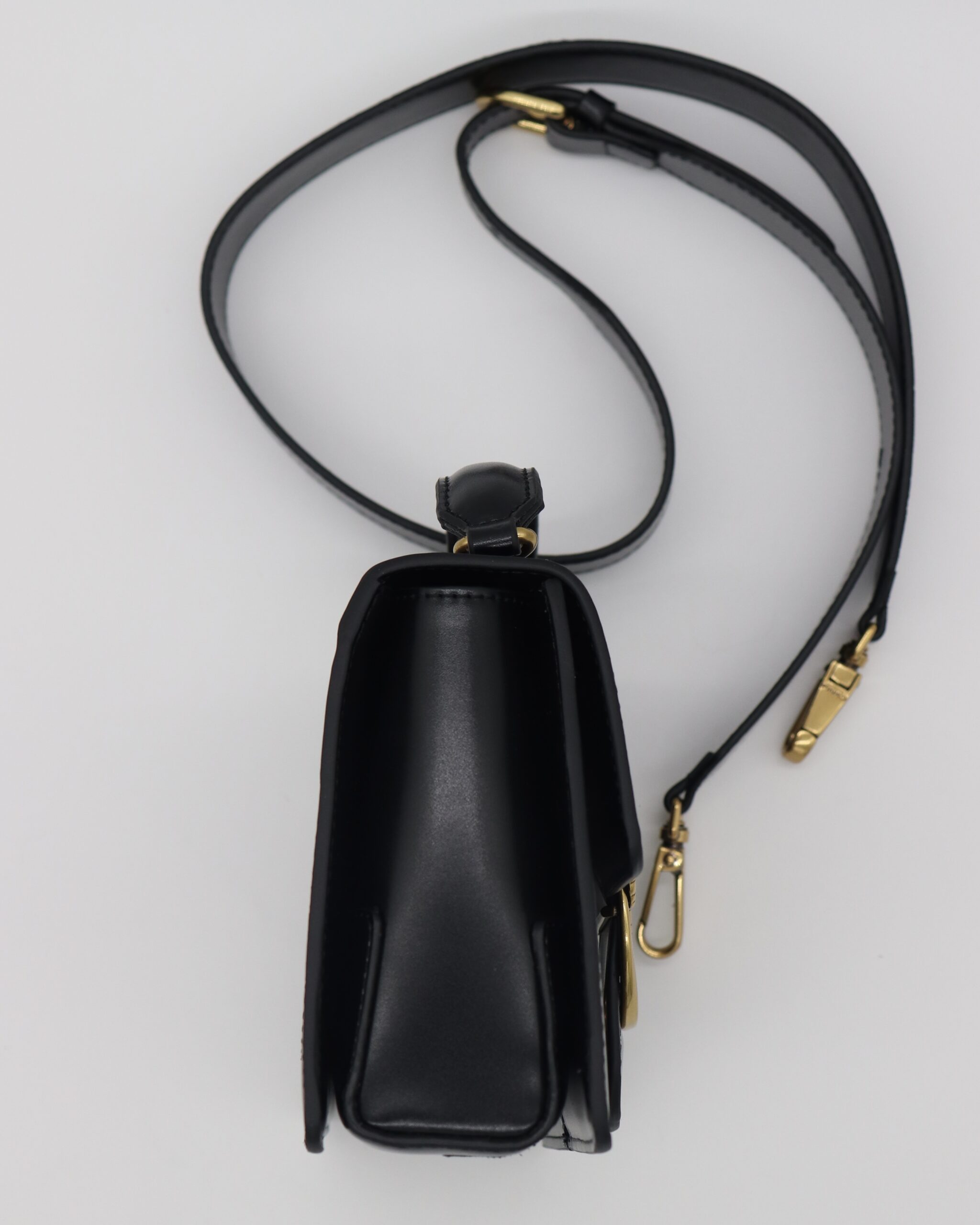 Crna verzija Mini Love torbe odiše elegancijom i svestranošću. Sa sofisticiranim zlatnim detaljima i kompaktnom formom, savršena je za večernje izlaske i sve prilike kada želite da izgledate dotjerano i s merom.